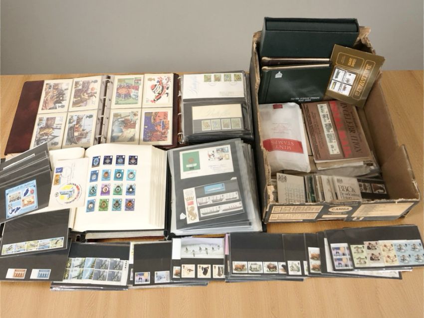 A very large quantity of stamps including many Royal Mail Mint Stamp sheets, numerous albums and their contents, stamp reference books and other philatelic materials. (1 pallet, viewing advised)