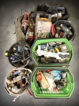 A collection of power tools and hardware to include drills, Pro angle grinder, various hand tools. (1 pallet)