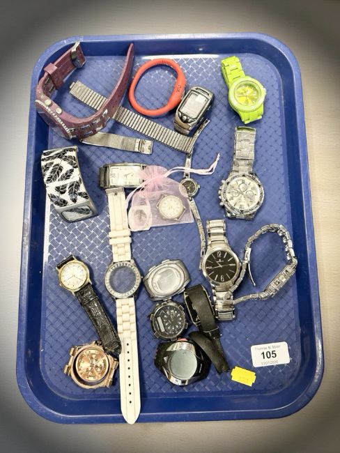 A group of watches and various watch parts including Zhowe, Slimstar, Adidas, etc. (1 tray)