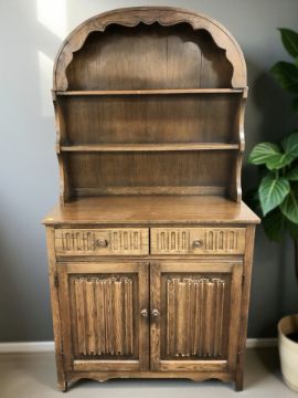 A Dutch style oak linen fold dresser, 96 cm x 46 cm x 178 cm.