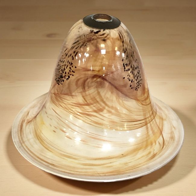 An early 20th century mottled and painted glass light shade, diameter 28 cm.