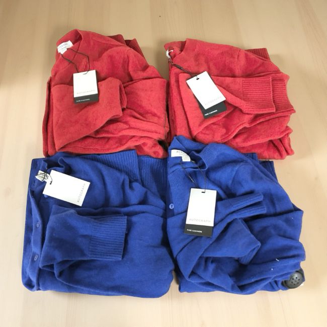 Four M&S Autograph pure cashmere lady's buttoned fleeces, all with retail tags, ranging from sizes 10 to 14.