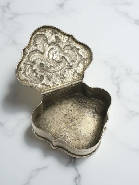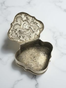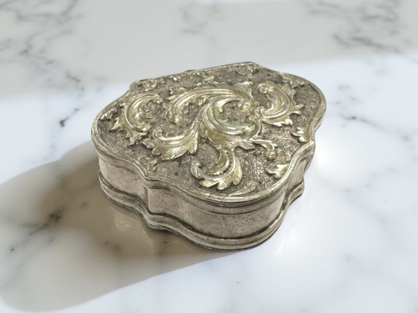 An 18th century silver-gilt cartouche-shaped snuff box, width 6cm