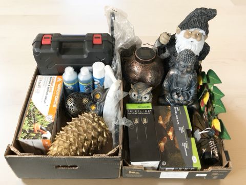 Modern household ornaments, outdoor lights, DIY products etc (two boxes)