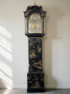 A 20th century chinoiserie eight day longcase clock, with pendulum and two weights, height 220 cm.