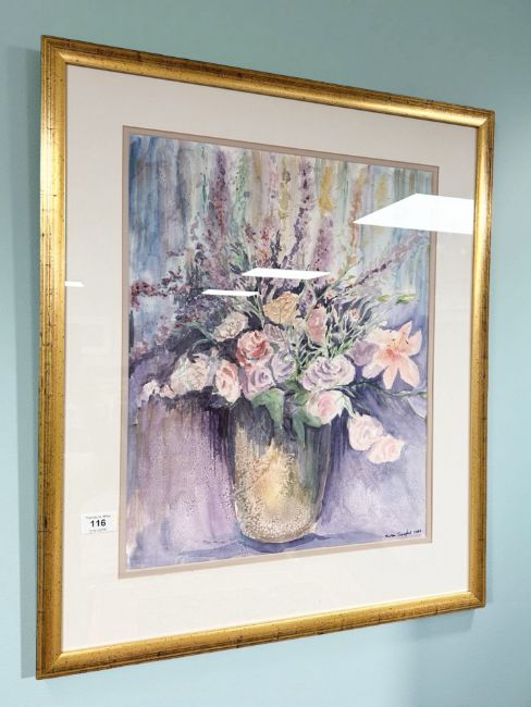 Marta Josefs : Still life with flowers in a vase, watercolour, 39 cm x 49 cm.