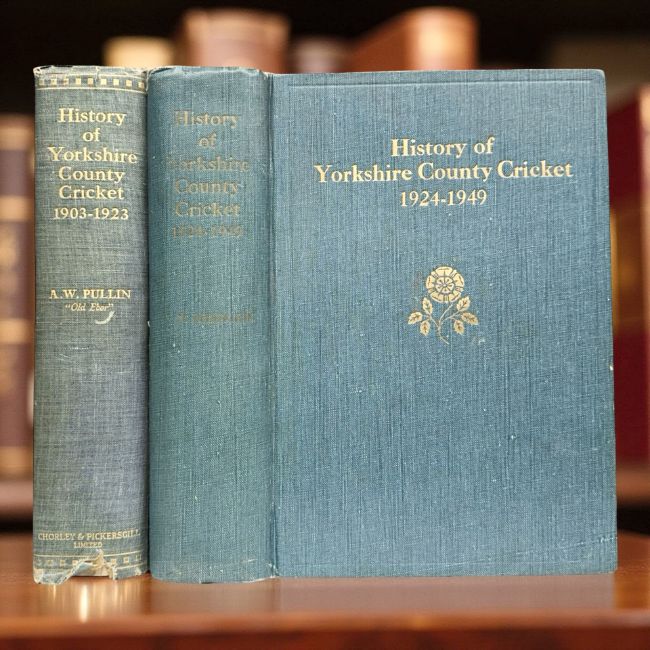 Pullin, Alfred William ("Old Ebor") : History of Yorkshire County Cricket 1903-1923, with an introduction by The Right Hon. Lord Hawke, publisher Chorley & Pickersgill Ltd, The Electric Press, Leeds 1924, 8vo, blue cloth. Together with Kilburn, James Maurice : History of Yorkshire County Cricket 1924-1949, with a foreword by J L Taylor, President Yorkshire County Cricket Club, published by The Yorkshire County Cricket Club, 1950, 8vo, full blue cloth. (2)