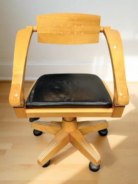A Giorgetti 'Zeno' executive desk and matching spring chair designed by Massimo Scolari, polished beechwood with Macassar ebony insert, height 73.5 cm, width 161 cm, depth 80.5 cm, both parts with Giorgetti plaques numbered 011456 & 011611 respectively. (2)