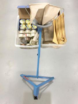 A quantity of packing tape, padded envelopes and other packaging equipment.