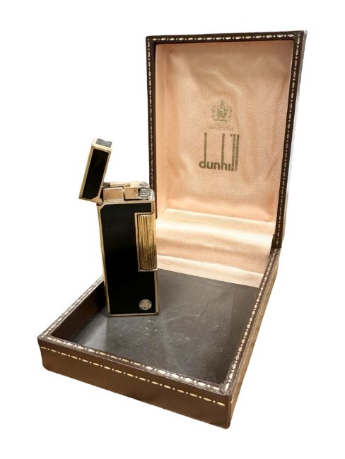 A Dunhill black enamel Rollagas lighter, with Dunhill box