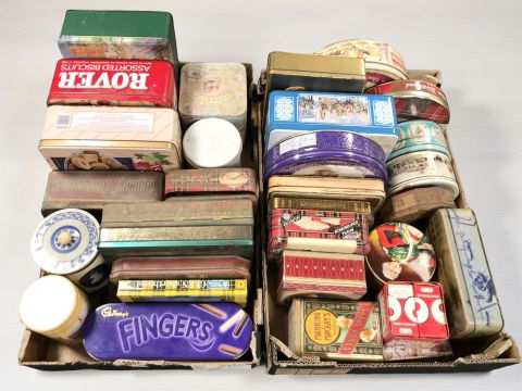 A collection of antique / vintage tins. (2 boxes)