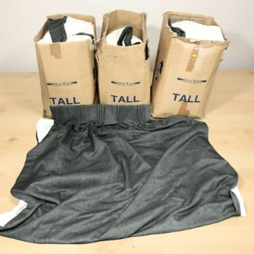A quantity of modern charcoal grey curtains, each approximately 240 cm drop x 80 cm wide. (3 boxes)