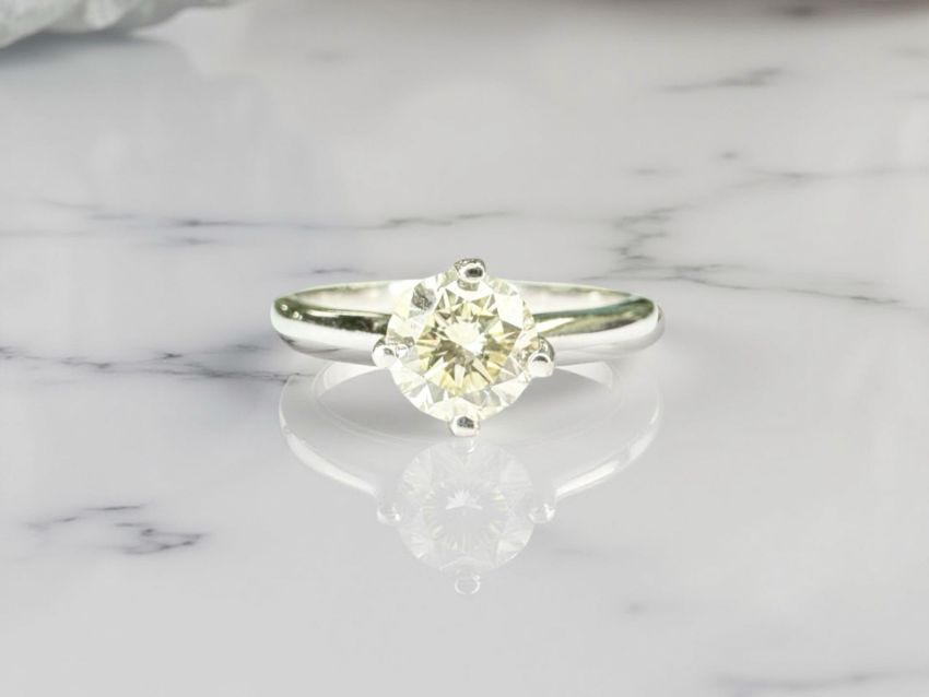 An 18ct white gold diamond solitaire ring, 0.79ct, size L.