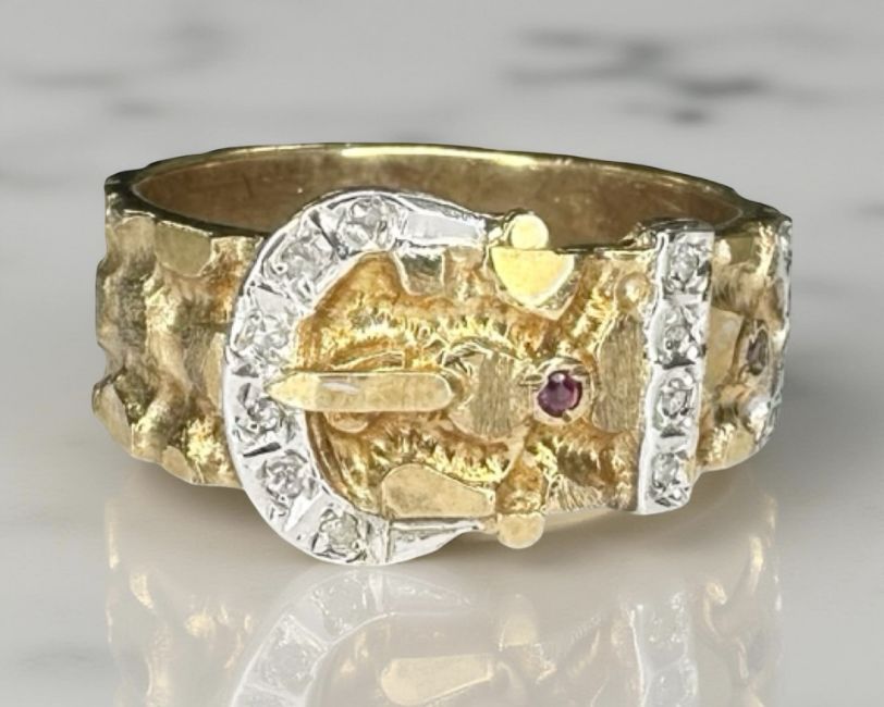 A 9ct yellow gold buckle ring, size S.