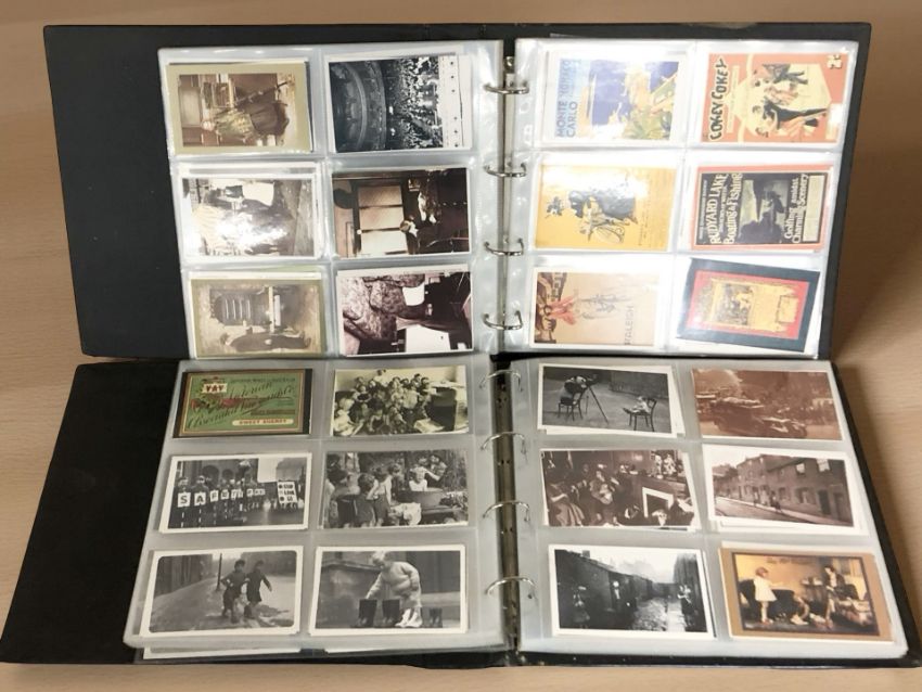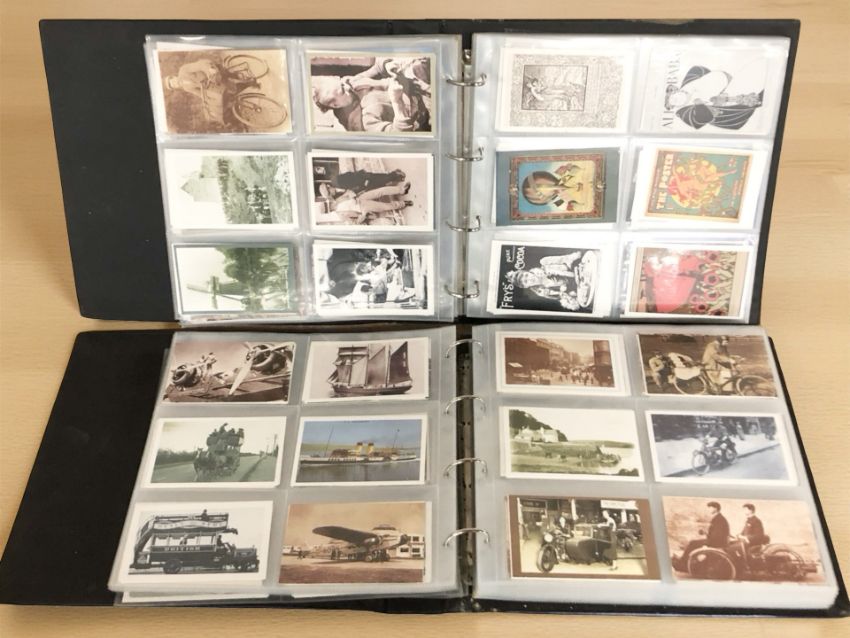 Two albums of reproduction colour and monochrome postcards.