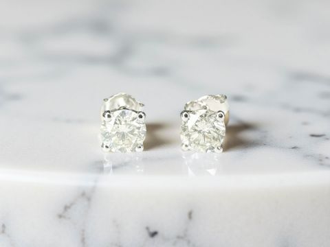 A pair of 18ct white gold diamond stud earrings, total 1.01ct