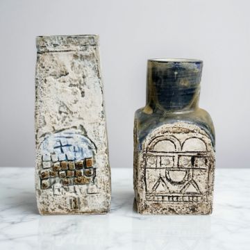 A Troika coffin vase, height 17cm, and a further square section example (the latter cracked to rim). (2)