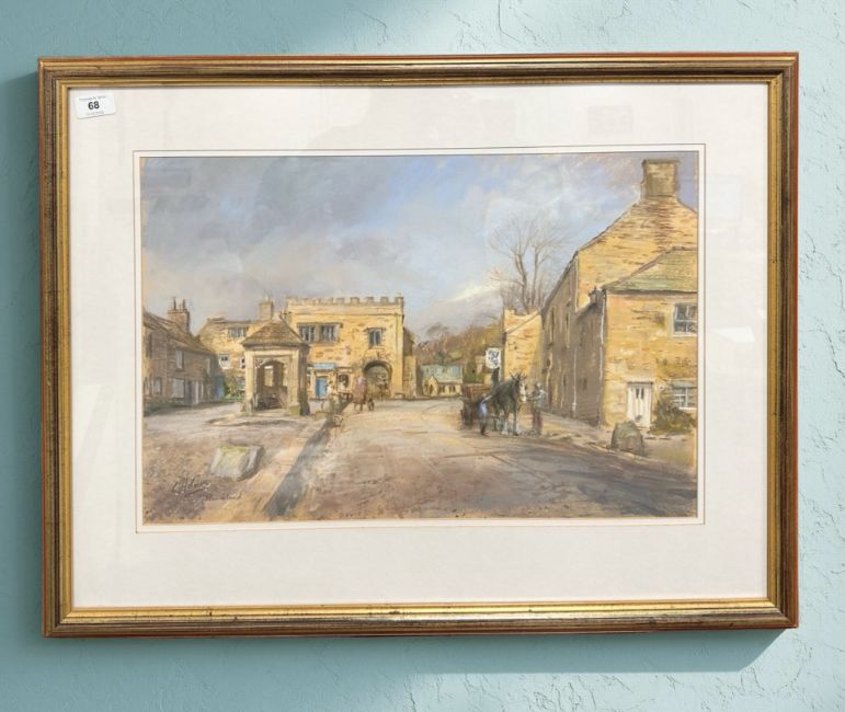 Walter Holmes (Born 1936) : Blanchland, pastel, signed bottom left, 36 cm x 54 cm, framed.