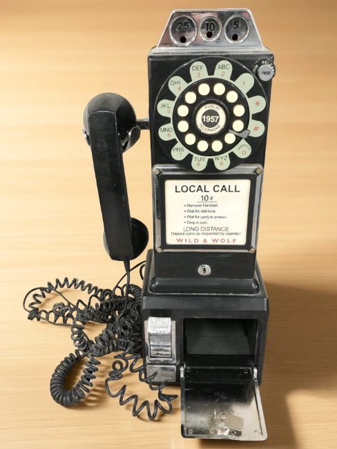 A reproduction model of a payphone, height 44 cm.