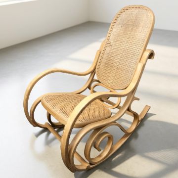 A Thonet-style curved bentwood and cane rocking chair, width 54 cm.