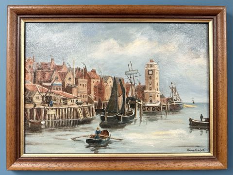 June Colvin : A historic view of North Shields, oil on canvas, 34 cm x 24 cm.