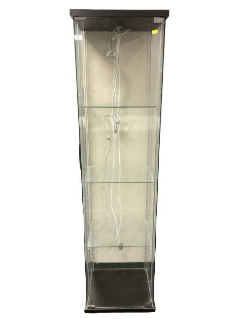 A glazed display cabinet with shelved interior, width 43 cm.