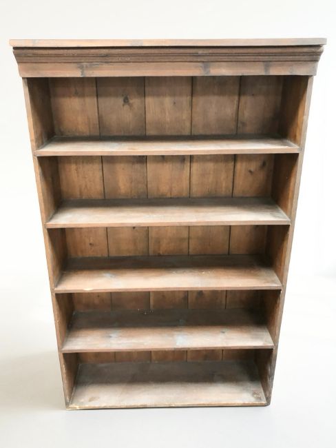 A stained pine open bookcase, width 85 cm.
