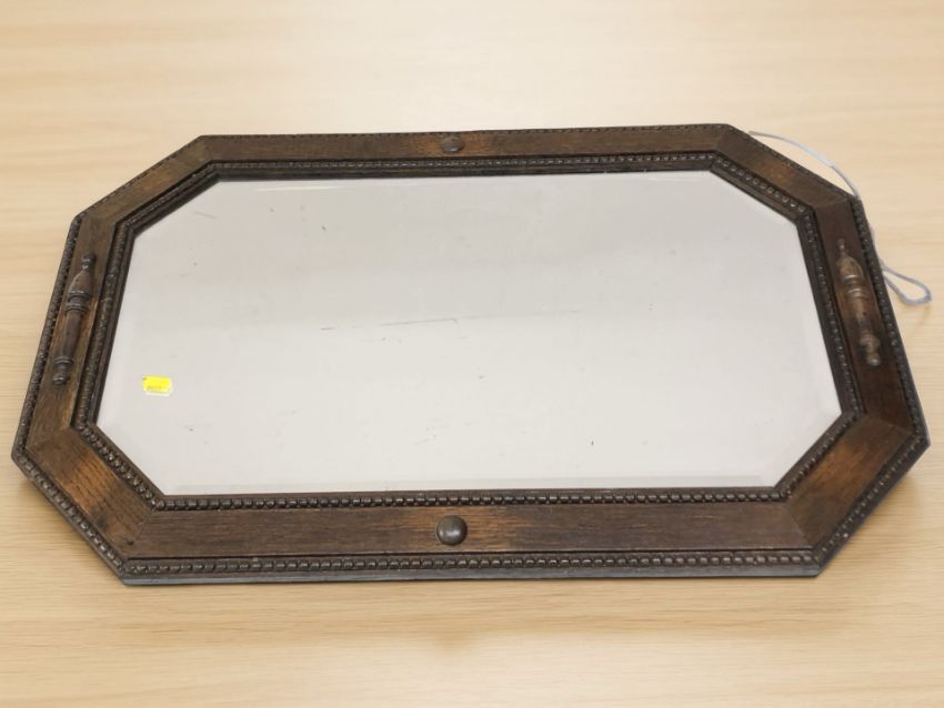 An Edwardian octagonal oak mirror, width 80 cm.