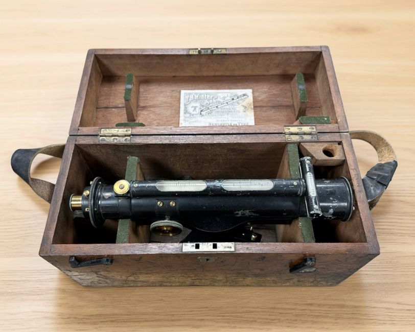 A T B Winter & Son surveyor's level, in fitted wooden carry case.