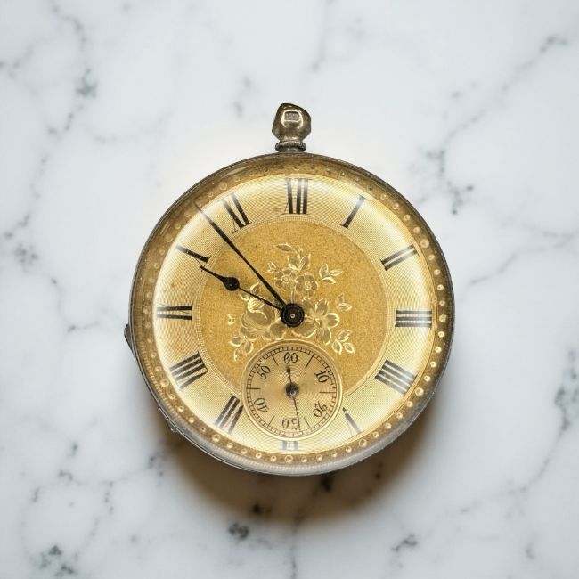 A lady's open faced pocket watch, stamped K9, inner back cover also marked 'Warranted K9', dust cover base metal, case 40mm (as found)