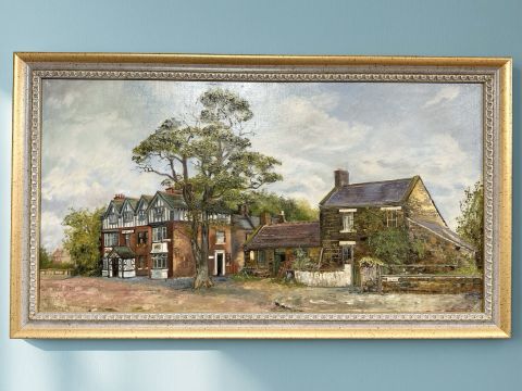 June Colvin : The Diamond Inn, Ponteland, oil on canvas, 75 cm x 39 cm.