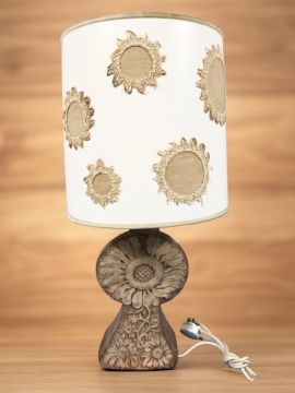 A 1970's pottery table lamp with shade, height 73 cm overall.