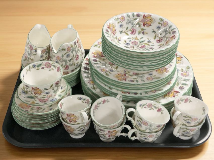 Approximately fifty two pieces of Minton Haddon Hall coffee and dinner porcelain.