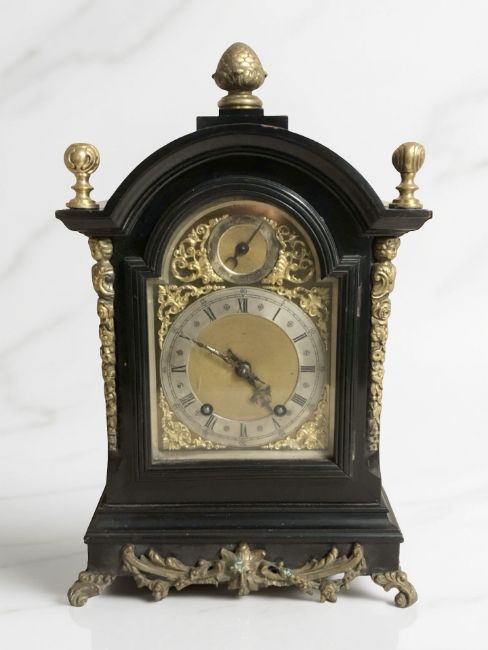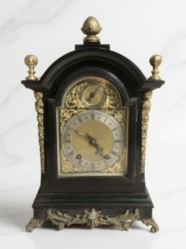 A 19th century ebonised and brass mounted bracket clock, height 49 cm.