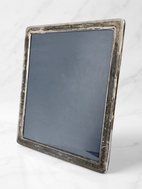 An Elizabeth II silver-mounted easel photograph frame, Carr's of Sheffield Ltd, Sheffield 1992, overall 28.5cm by 23.5cm.