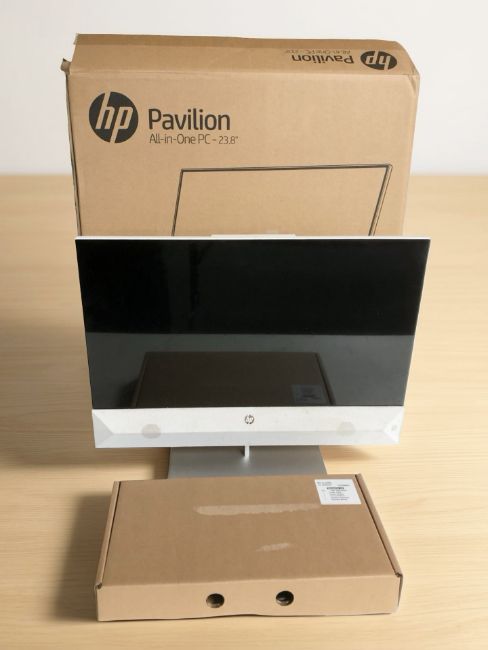 An HP Pavillion all-in-one PC, with 23.8" screen, with lead and box.