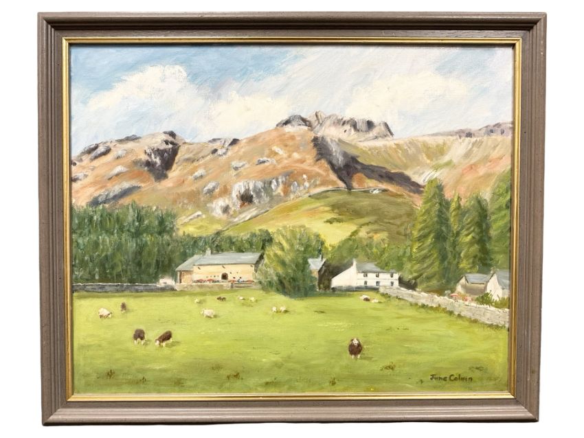 June Colvin : Farmstead by a hillside, oil on canvas, 49 cm x 39 cm.