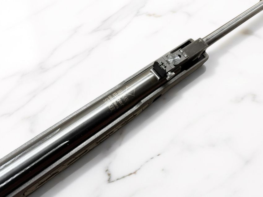 A Hatsan Edgar Brothers Striker break-action air rifle, .22 calibre, marked 0314 05697, with gun slip.