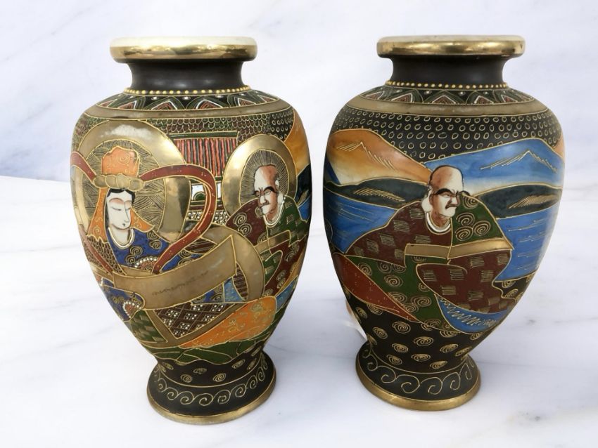 A pair of 20th century Japanese satsuma ovoid vases, height 37 cm.