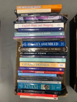 Twenty six books all relating to architecture : Elaine Denby, Tom Quinn, Ricky Leaver, David King, Steven Brindle, Stewart Brand, Faith Eaton, Richard Gray, Sir Terry Farrell, etc.