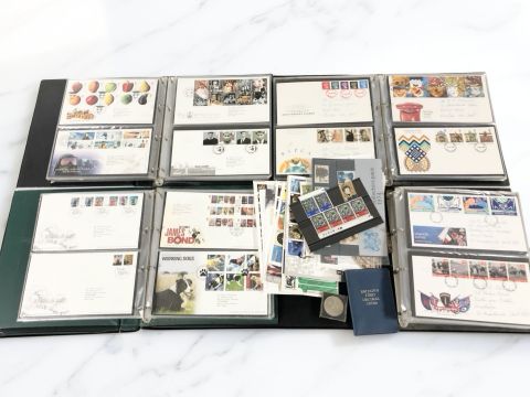Four albums of first day covers, various stamps including mint examples. (1 box)