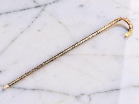A Victorian silver mounted bamboo horse measuring walking stick, with retractable slide rule, the thumb piece engraved 'J M Wallace, Newbridge, Mon', extended length 173 cm / 68".