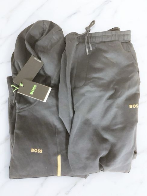A Boss tracksuit top, size M, and tracksuit bottoms, size M, both with retail tags.