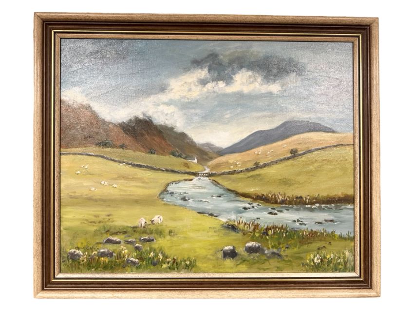 June Colvin : Sheep on a hillside, oil on canvas, 49 cm x 39 cm.