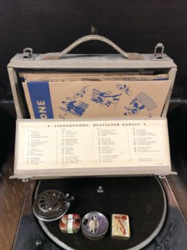 An early 20th century oak cased gramophone, width 70 cm.