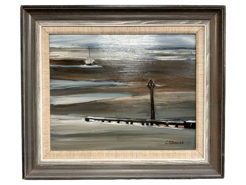 Stephanie Dingle (1926 - 2017) : Low Tide, oil on board, 37 cm x 29 cm.