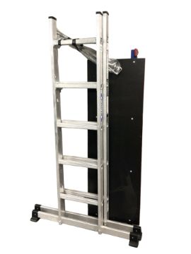 An aluminium ladder with central platform.