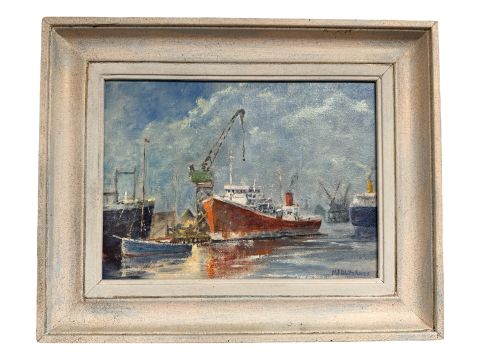 Paul R Whitehouse : Ship repair at Walker, oil on board, 22 cm x 17 cm.