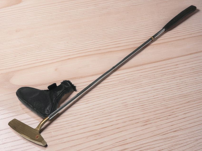 A Flex Bammer nail gun, in case, with related components. Together with a golf club. (2)