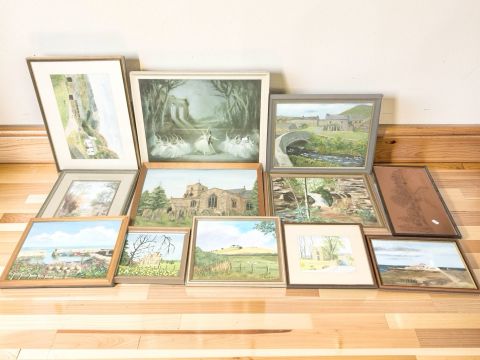 A collection of June Colvin oil paintings, several other pictures and prints. (1 box)